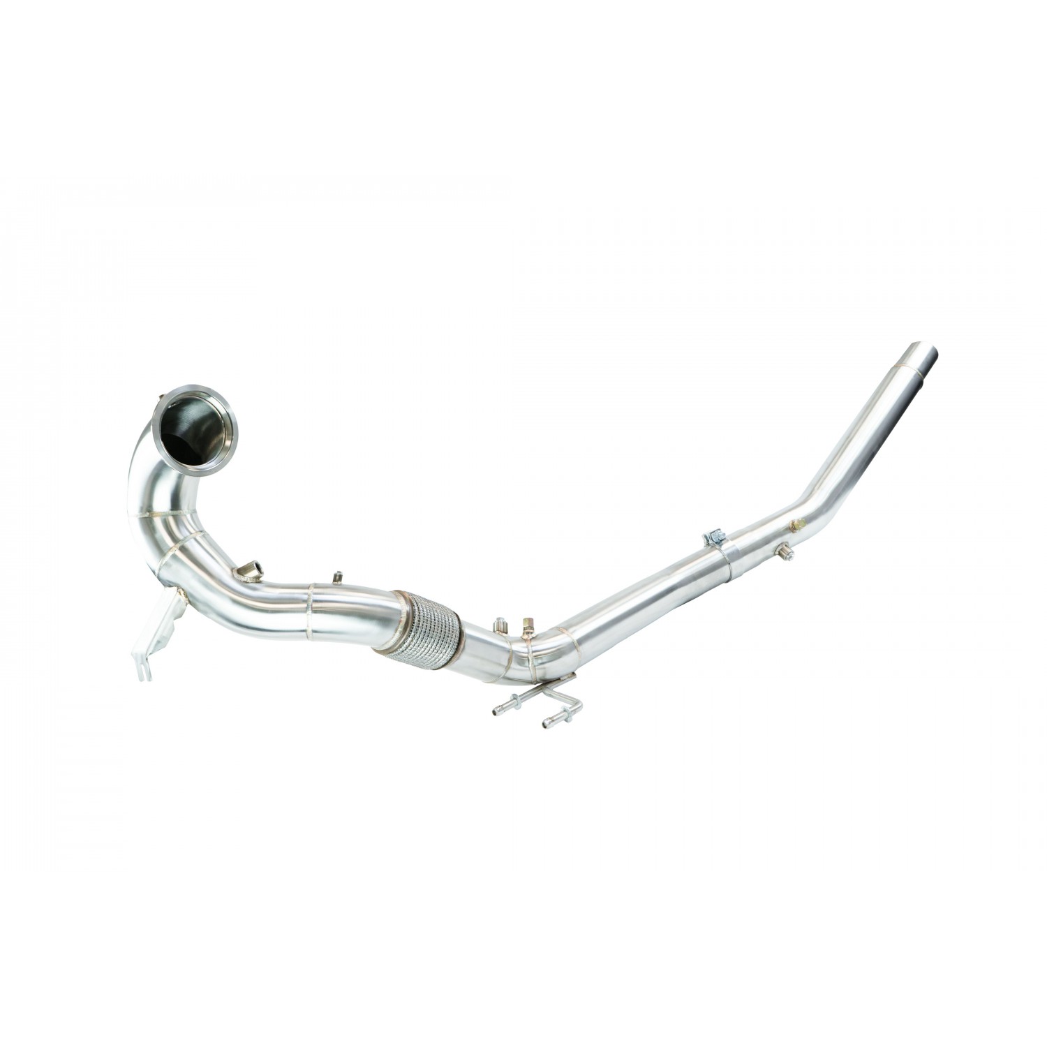 Black Mamba 3″ (76 mm) Decat Downpipe for VW Golf 8 R and Audi S3 8Y EA888.4 engines, engineered for maximum exhaust flow and performance gains. Constructed from high-quality T304 stainless steel with precision TIG welding, this direct bolt-on downpipe eliminates both OEM catalysts and the OPF, delivering a proven 35hp gain on Stage 1 setups and a more aggressive exhaust tone. Includes all necessary hardware for seamless installation.