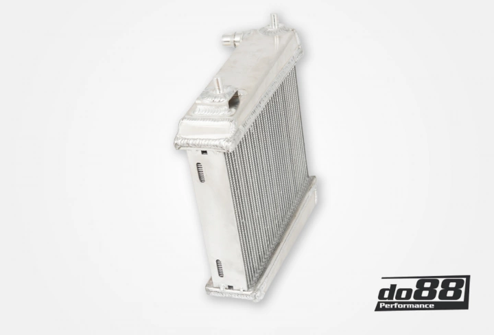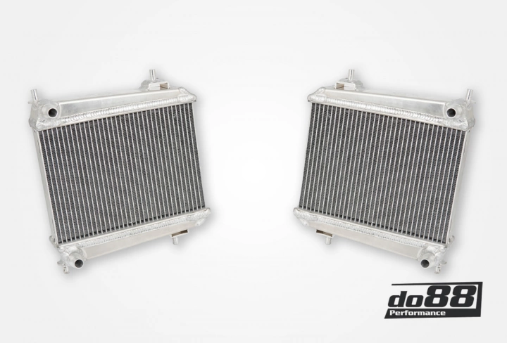 Fortunately, the design space available for the auxiliary radiators allows for both increased frontal surface area and core thickness on both sides of the car. The OE radiator is identical for both sides, and our do88 Performance Radiators are designed to be drop-in replacements for both left and right sides. We offer them as a pair because upgrading just one radiator isn’t as effective as upgrading both simultaneously. Our Performance Auxiliary Radiators provide enhanced cooling capacity to prevent heat soaking. Key features include: