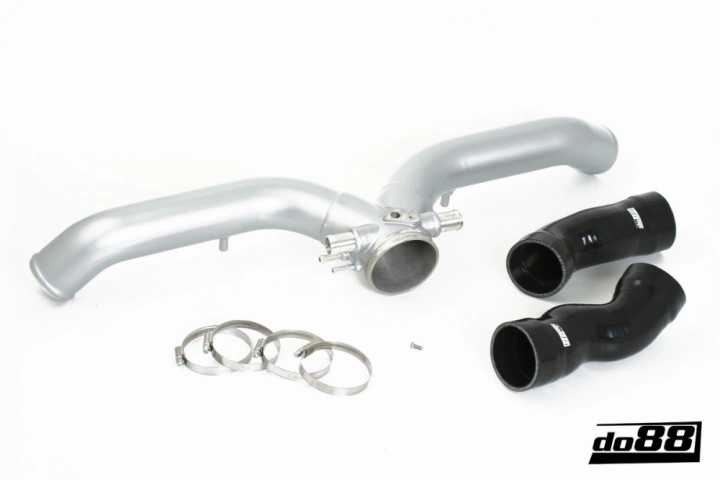 The kit also includes 2 high quality custom designed silicone hoses which is available in two different versions. Which version you need depends on if you will install the y-pipe together with the OEM intercoolers or the do88 performance intercoolers. You can make your choice of hoses in the drop list above.