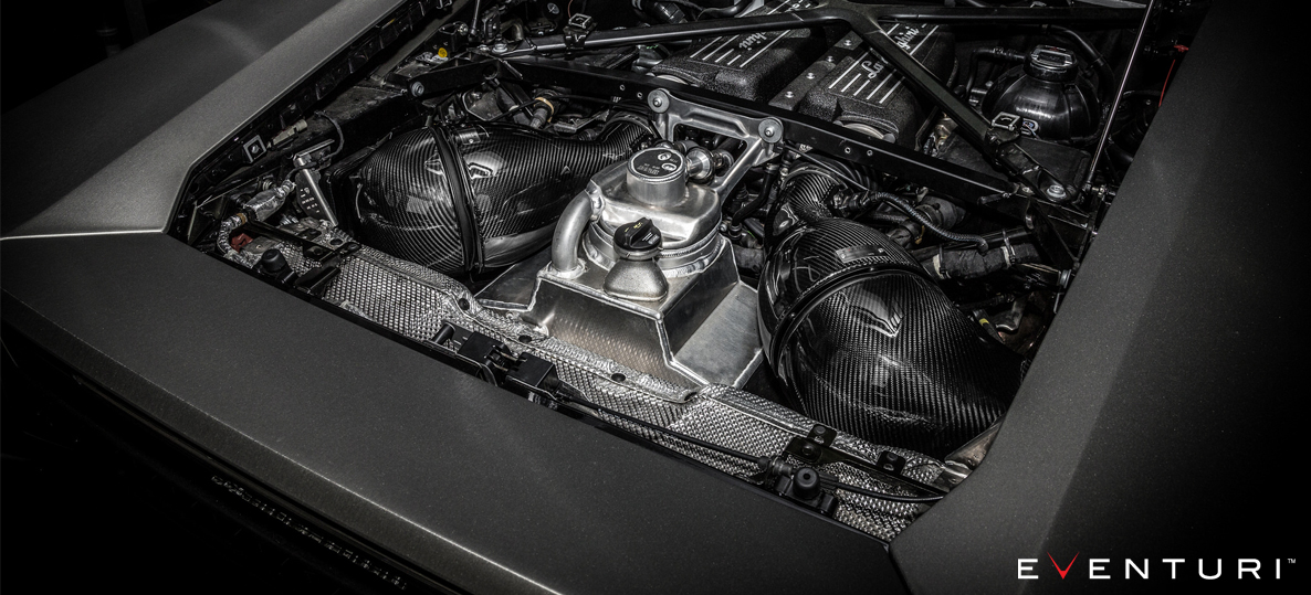 This Eventuri intake system, specifically designed for the 5.2 FSI engine of the Audi R8 V10 2015+ and Lamborghini Huracan, features oversized airboxes with carbon fiber housings and built-in inlet pipes, high flow dry air filters, carbon fiber air diffusers and all required hardware for easy and direct installation*. This unique intake system finished in high glossy carbon fiber shown a great 15hp dyno proven gain on stock engine !