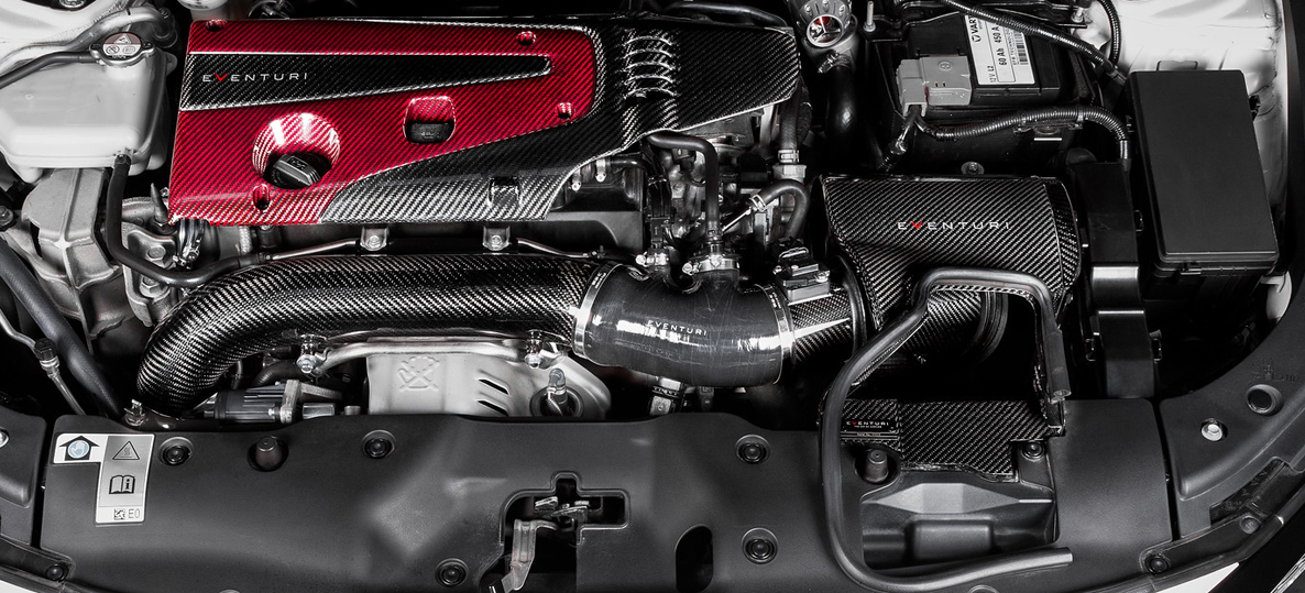Il sistema Eventuri Civic Type R FK8 utilizza un alloggiamento in fibra di carbonio in attesa di brevetto che fornisce un percorso del flusso d’aria aerodinamicamente efficiente dal filtro al tubo MAF. Non solo un altro filtro a cono con uno scudo termico, ma un design unico che richiama l’effetto Venturi, questa straordinaria presa mostrata fino a un enorme 20 cavalli in più sul motore oem.