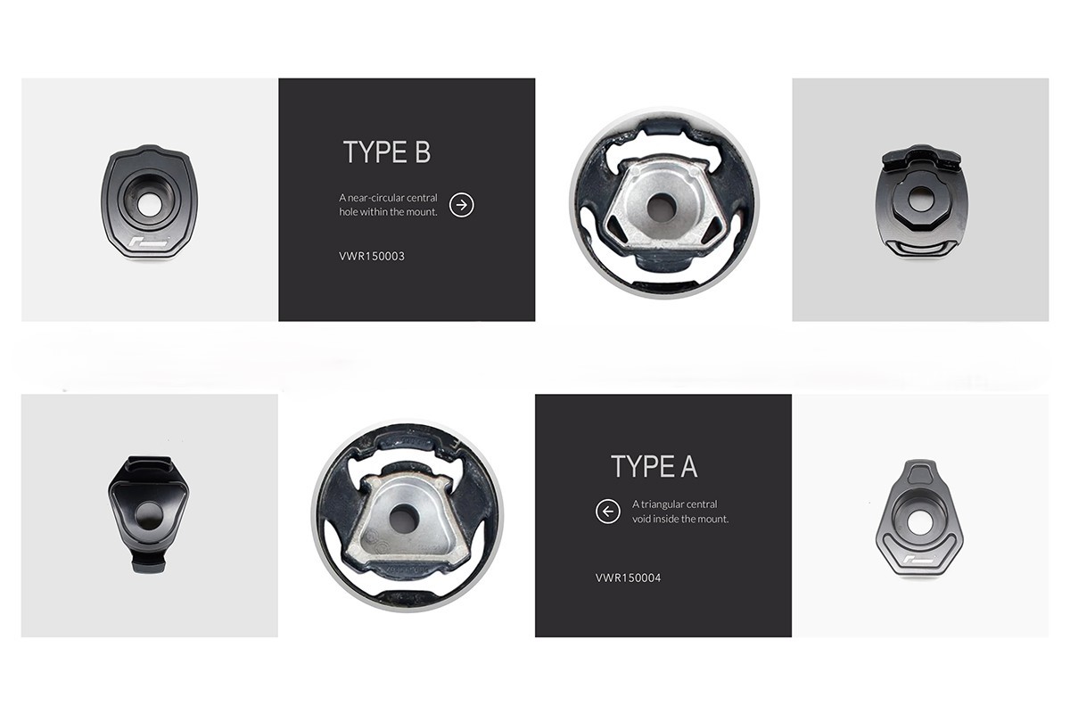 This Racingline dogbone insert kit fits without modification on the Golf 7 / Golf 8 / S3 8V / RS3 8Y or Leon 3 Cupra, sharing the MQB and MQB Evo chassis, in order to stiffen the OEM lower engine mount. By filling the voids around the original bushing, this kit of two aluminum inserts, available in version A or B to choose depending on the type of mount installed as standard, will limit engine / gearbox movements to transform the drive feeling through eliminating wheel hop.
